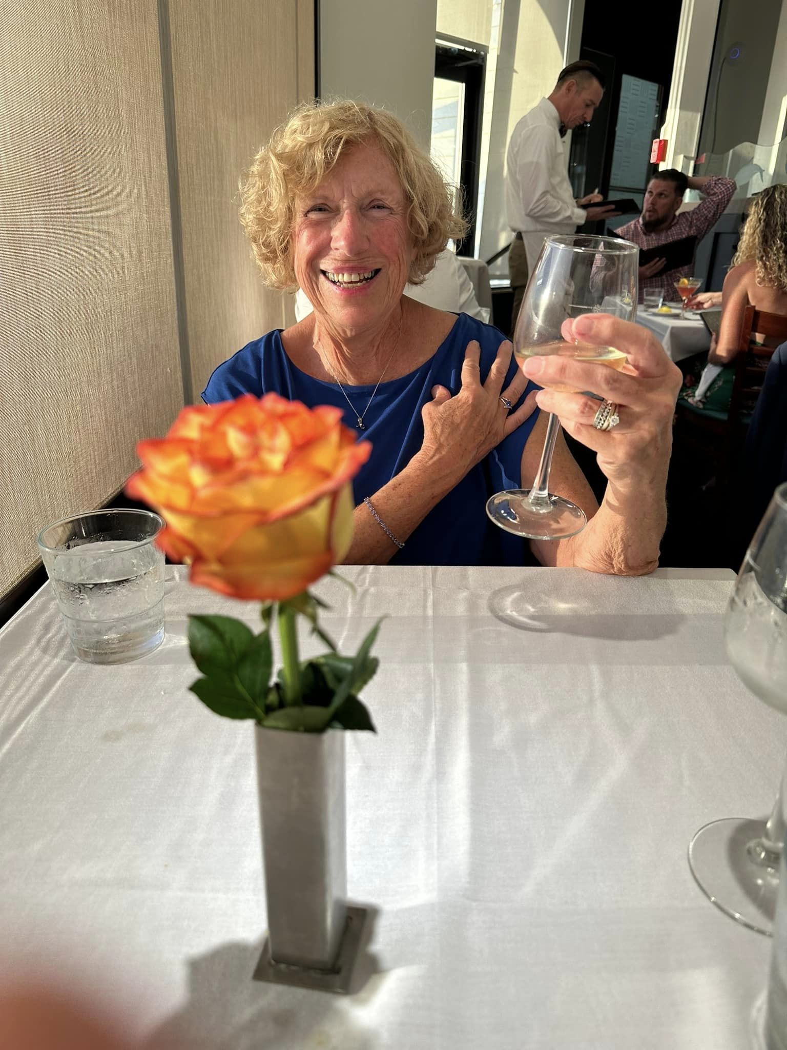 First up, my mom celebrated a milestone birthday. Last Thursday Mom turned 75. Here’s Mom showing off the new tanzanite jewelry Dad got her: