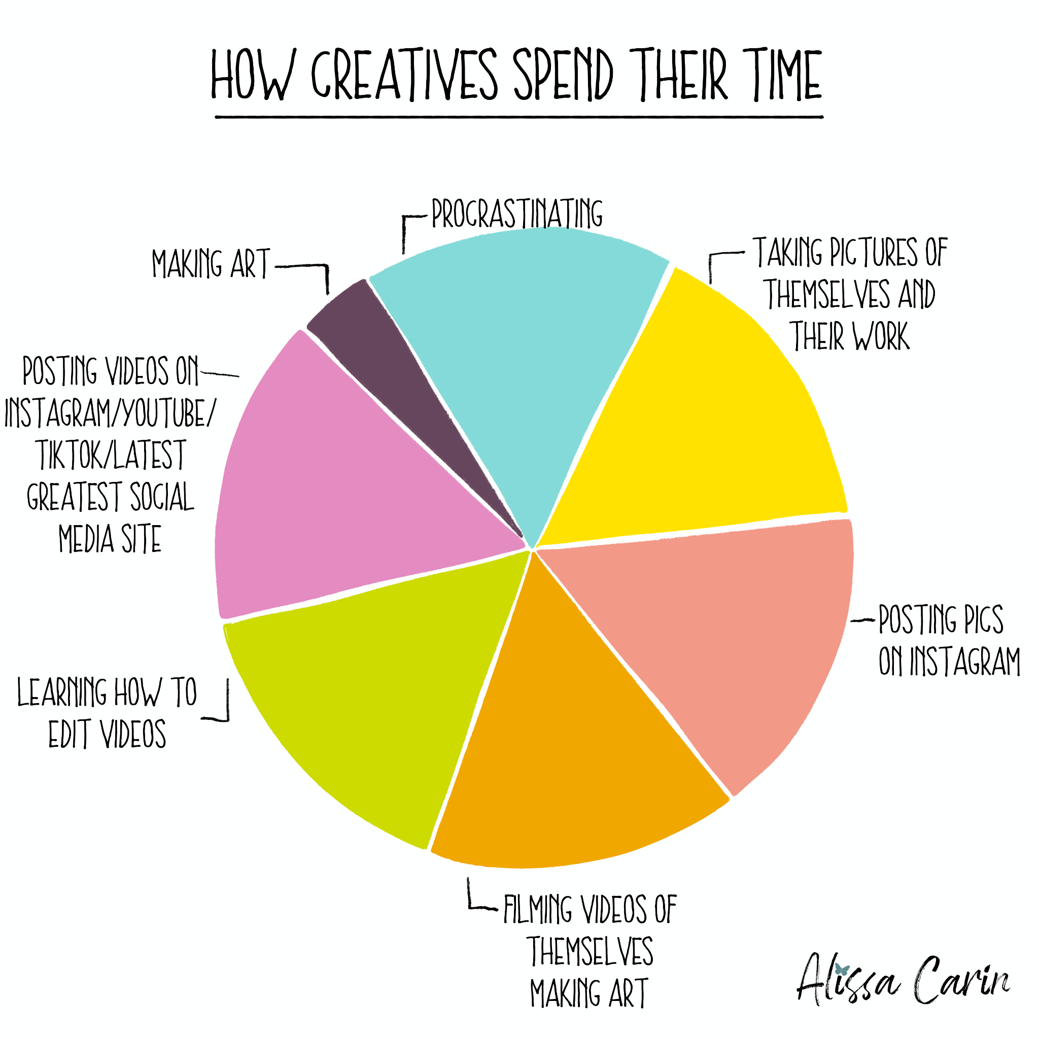 I think the biggest challenge most internet-age creatives face is accepting that making art is just a small part of their job duties. I made this humorous pie chart to put things in perspective: