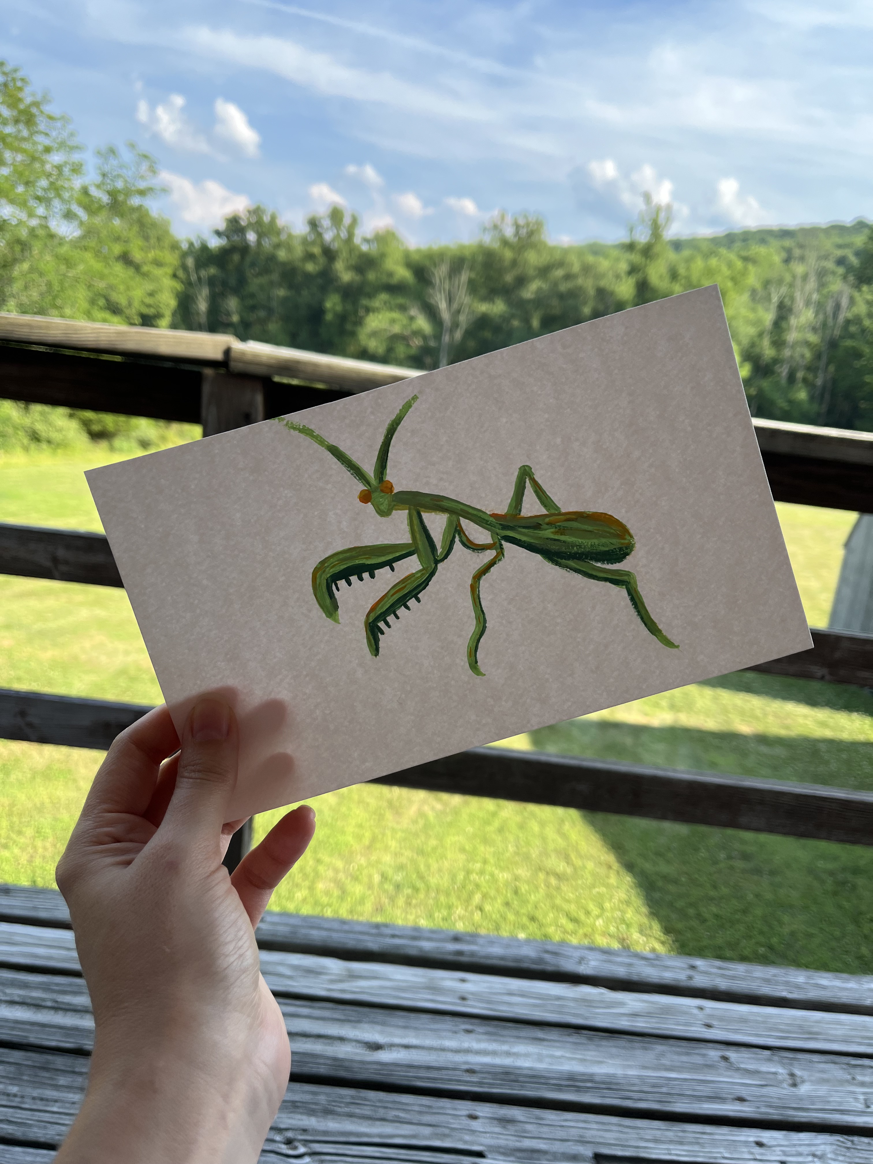 The praying mantis is actually pretty good. Keep painting.