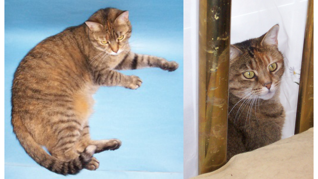 She was skittish at first, but warmed up to me fairly quickly. She was pretty quick to accept fact that she was a house cat now and decided to become a full fledged member or my strange little household. I dubbed her Autumn due to the season and the fact that she had some orange in her coloring. You can see her all grown up on the photo on the left above.