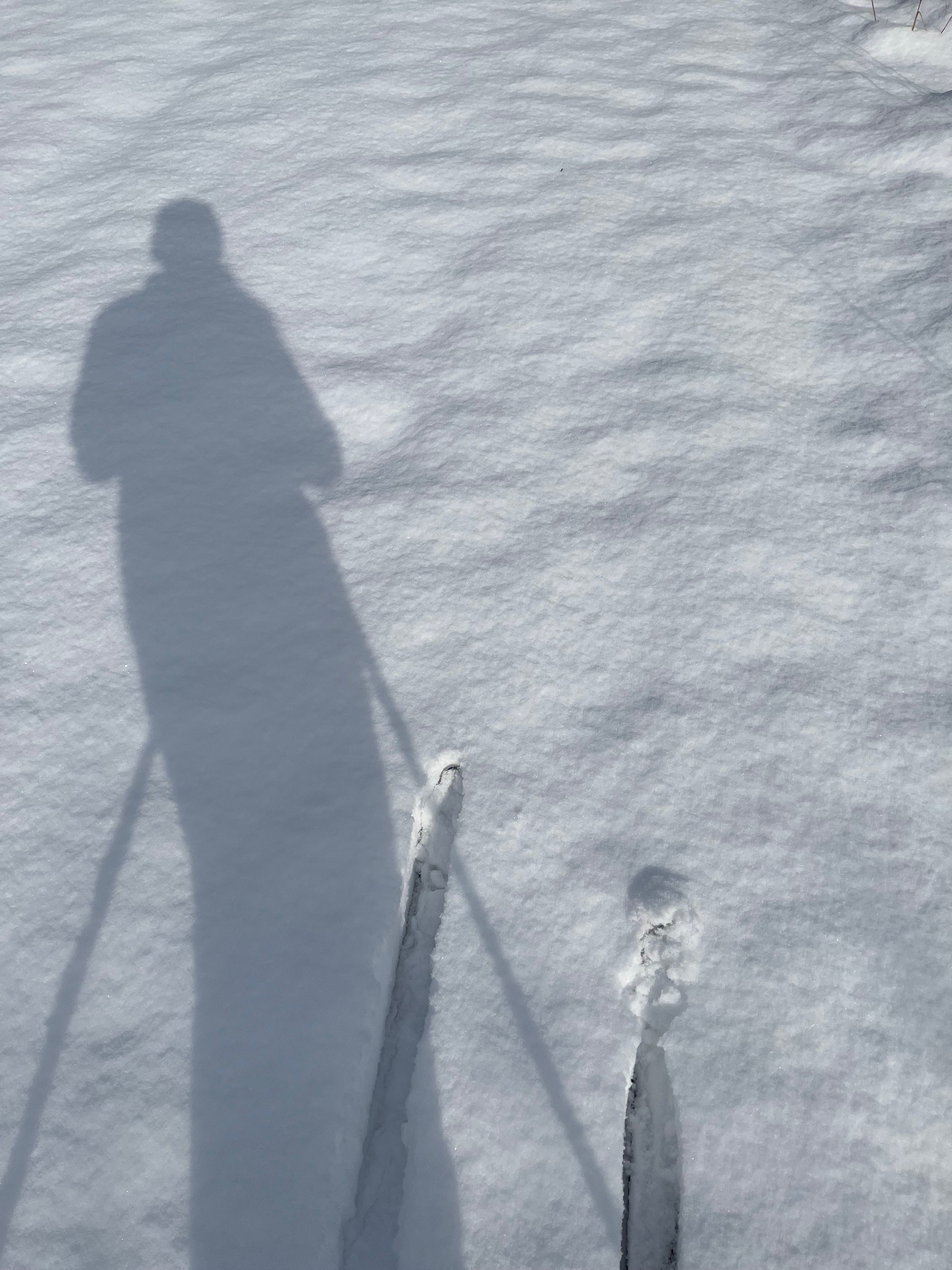 After a little bit of shoveling, it was time to dig the skis out of storage and take a few tours around the backyard. Sunday the snow was a bit on the clumpy side, but I’m happy to report that things dried out some overnight and Monday morning’s skiing was actually pretty decent.
